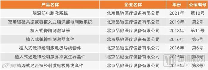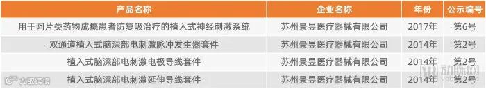 北京品驰医疗设备有限公司和苏州景昱医疗器械有限公司则是上榜产品第二多的企业。