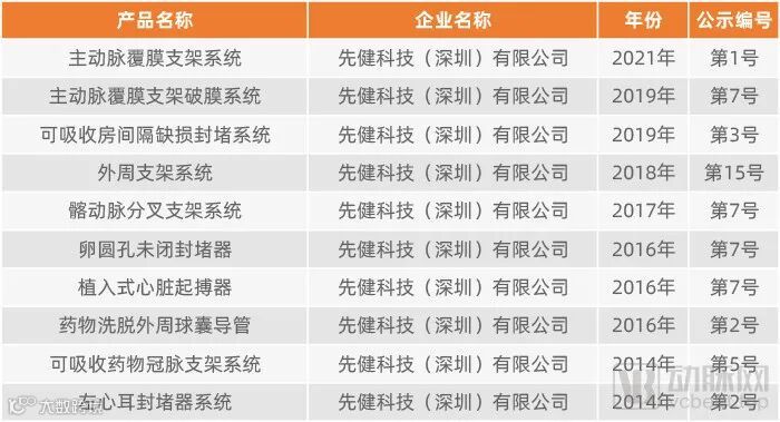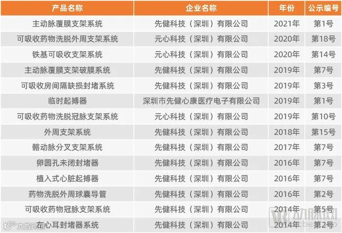 先健科技同样有3家子公司总共有14款创新医疗器械获批。