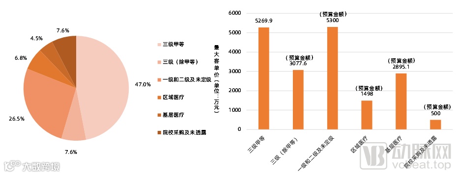 (2)三甲医院采购量最多,且客单价最大