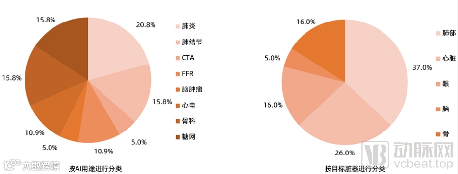 (3)人工智能质控、CDSS居多,肺部、胸部影像辅助诊断为主流