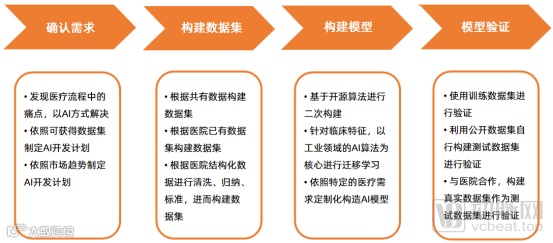 需求导向产品的研发是一个从“0”到“1”的过程,在研发过程中,企业没有公开数据集可以借鉴,需要企业与医院合作,获得数据、清洗数据、标注数据,并建立模型(部分算法可从工业迁移),这一类人工智能开发难度较大,但取得审批后能够构建坚实的竞争壁垒。