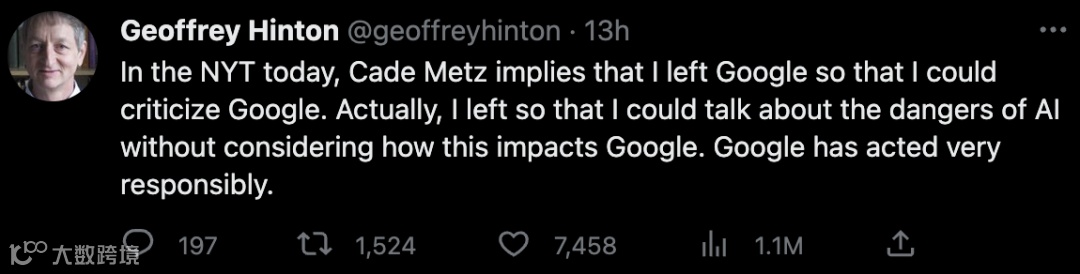 选择离职谷歌后,Hinton终于可以畅所欲言地谈论AI的风险了。