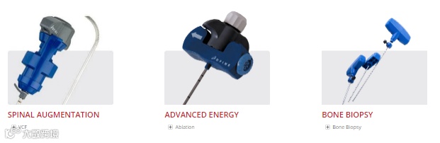 (四)介入肿瘤和脊柱产品:该类产品可用于治疗椎骨压缩性骨折,转移性脊柱肿瘤,肝癌,子宫肌瘤,有症状的良性前列腺增生,动静脉畸形和止血栓塞。产品组合包括:输送系统,栓塞治疗,脊柱消融,血管造影和椎骨压缩断裂。