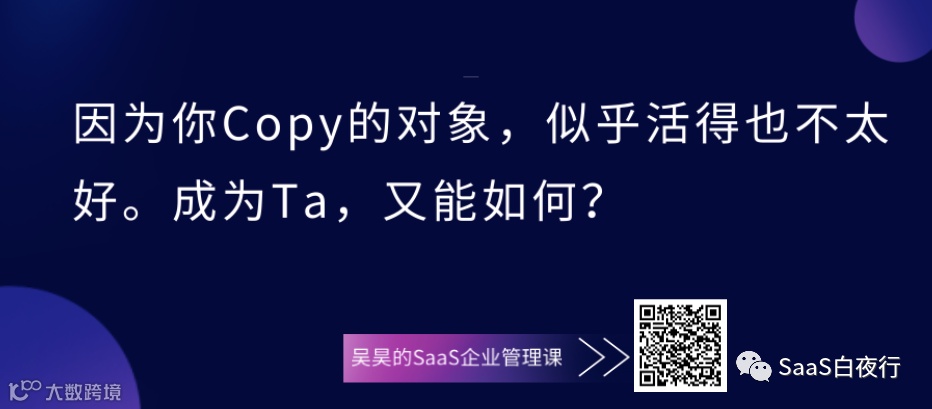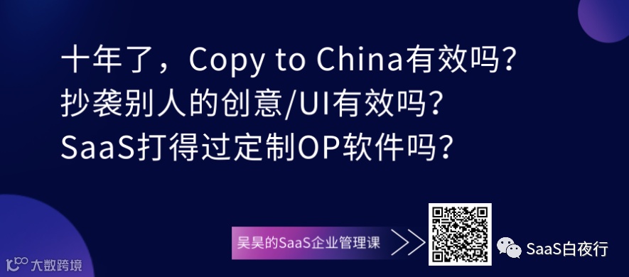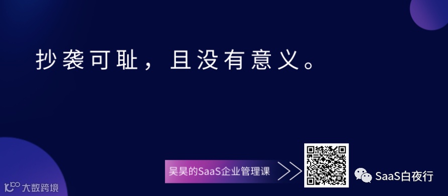 昨天和一个硅谷著名基金的中国区负责人聊天,她说到,美国的SaaS公司之间是羞于抄袭的,而美国有点名声的投资机构看到抄袭别人的创始人也绝对不会投钱。这大概就是我们说的“成熟生态”吧!