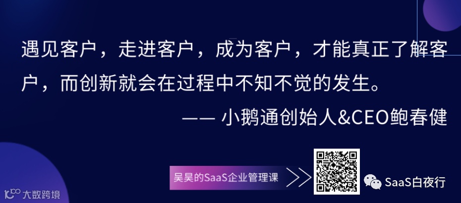 我再加补充一句老鲍的另一个金句——创新需要找到未来的客户。未来的客户未必是你今天最大的客户,而是引领未来趋势的客户。别被注定落伍的老旧企业和老旧做法耽误,为他们做定制开发是做不出优秀、标准的产品的。