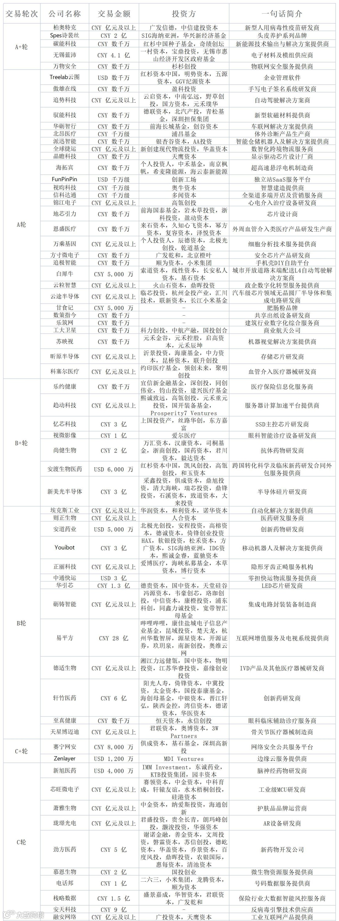 国内一周投融资信息汇总