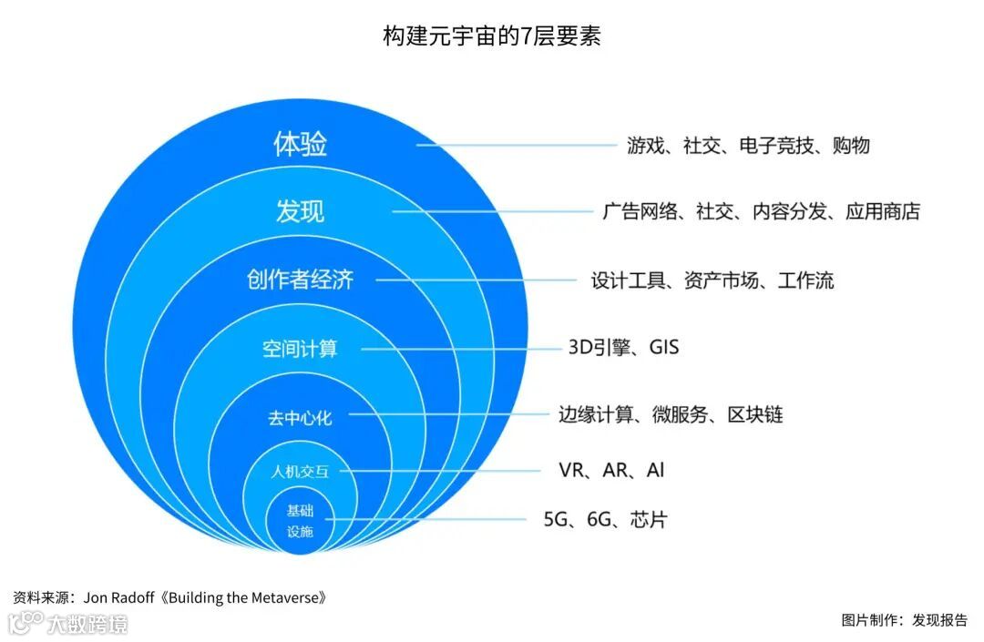 从体验场景出发,向内剖析底层技术,元宇宙产业链可以被划分为7层。由此可见,元宇宙是系列技术创新的融合。
