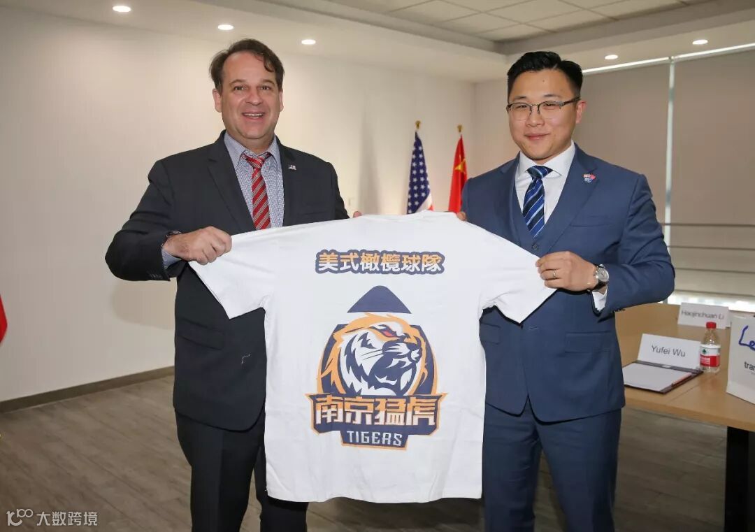 会议结束后,双方合影留念。总经理Jason Sun赠送总领事Sean Stein先生南京猛虎美式橄榄球俱乐部队服作为纪念,展示中美民间文化交流的成果。