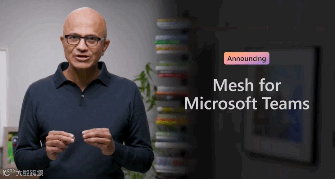 CEO纳德拉分享了关于混合现实会议平台 Mesh 中的体验场景,人们可以通过虚拟化身的形式见面和互动,还能共享Office文件等。