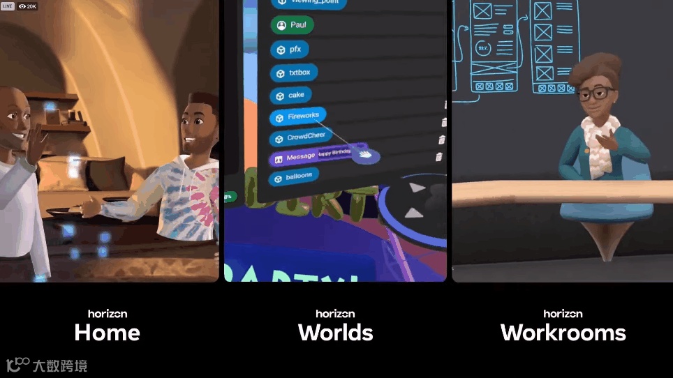 还推出了一系列更新,包括 Horizon Worlds、Horizon Homes、Horizon Workrooms、Messenger VR 和 fitness VR,用户可以在这些平台上创建虚拟世界、会议室和自己设计的家庭空间。