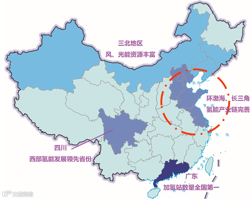 中国目前虽然是世界第一大产氢国,但各地氢能资源配置并不相同:能稳定制取绿氢的风、光电在三北地区,水电在西南地区;工业副产制氢零散遍布;而氢能产业基地集中在中东南地区。