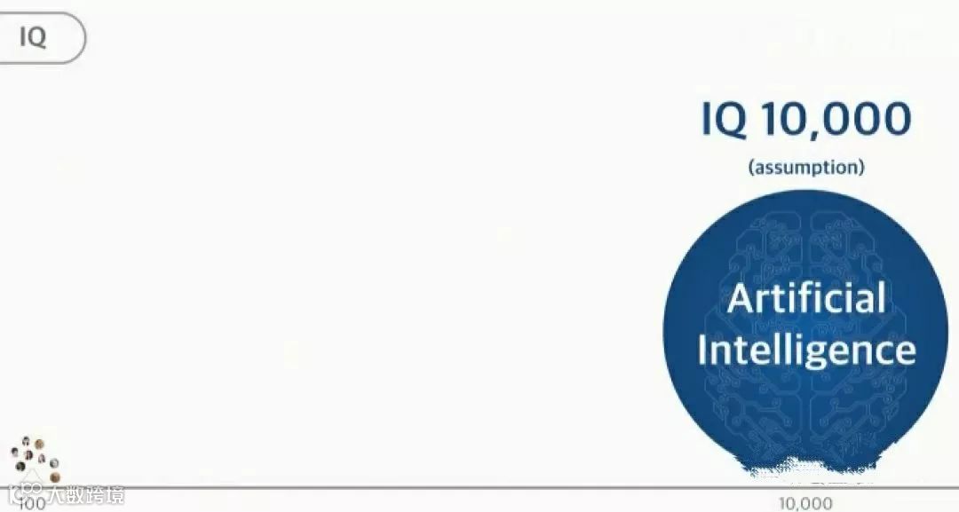 30年后,AI的智商将会是10000。你们有谁听过哪个人的智商是10000的?人不可能,但是“人工智能”可能。一万智商的AI,再天才的人都没法比。