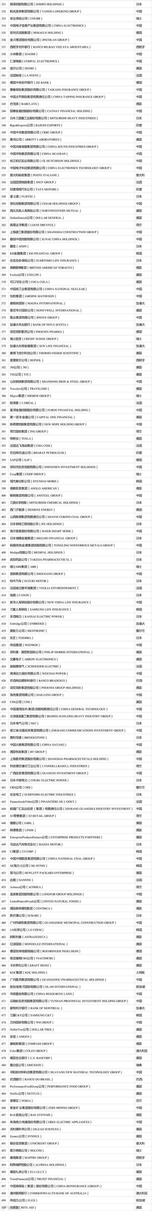 在国际方面,特斯拉和Netflix首次上榜,分别排名第392位和484位。此外,宜家特许经营商英格卡集团也是首次上榜,高居286位。
