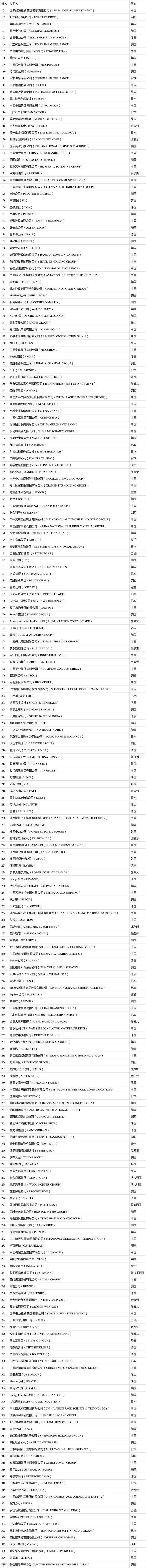 今年的榜单里,中国大陆(含香港)上榜公司数量连续第二年居首,达到135家,比上一年增加11家。加上台湾地区企业,中国共有143家公司上榜。今年,美国共计122家公司上榜,比上一年增加1家。