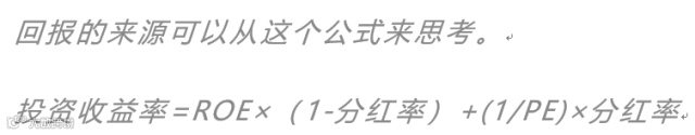 投资收益率=ROE×(1-分红率)+(1/PE)×分红率