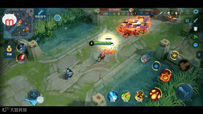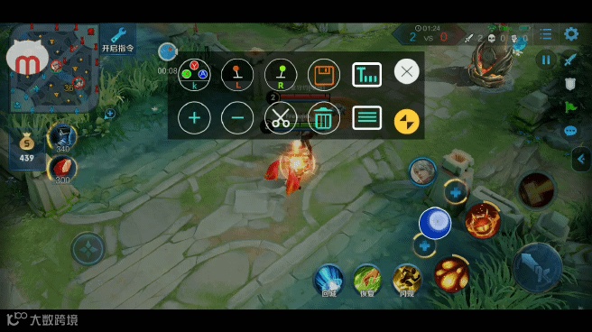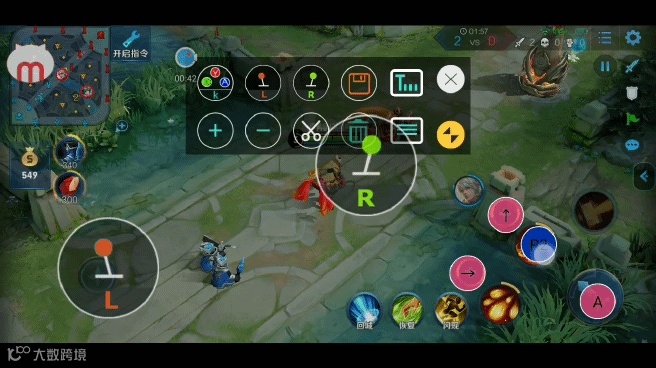 第二步,设置手柄按键:打开王者荣耀,进入游戏界面后, 快速双击悬浮窗图标,可以调出MOCUTE工具主菜单。( 可拖动位置)