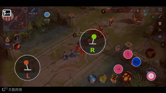 以上各按键设置完后点【保存】,关闭VT工具菜单,就可以在游戏中操作,如下所示方向技能用法:先按住R2,再用右摇杆指向。发射技能时要先松开技能键R2。