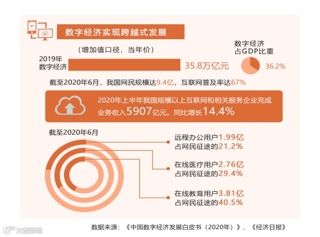 数字经济,是指以使用数字化的知识和信息作为关键要素、以现代信息网络为重要载体、以信息通讯技术的有效使用为效率提升和经济结构优化的重要推动力的一系列经济