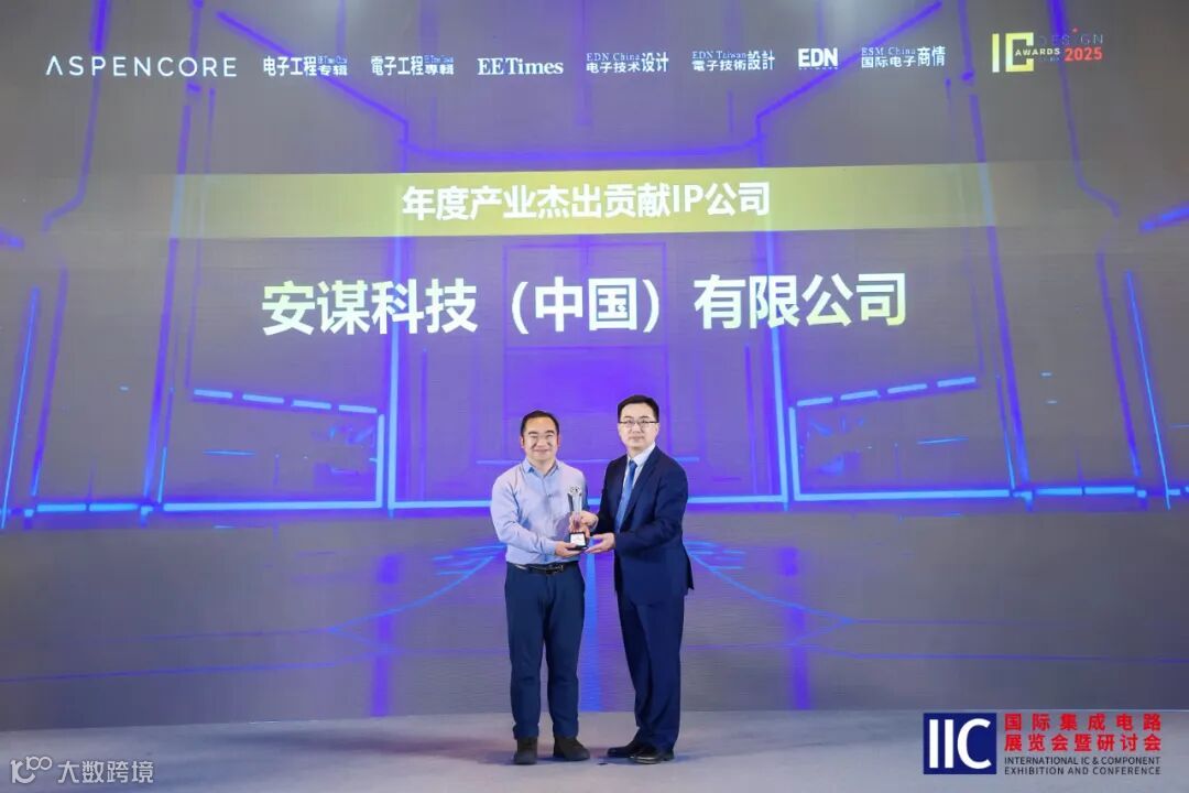 日前,2025国际集成电路展览会暨研讨会(IIC Shanghai)在上海举行。作为国内半导体产业上游的领军企业,安谋科技(中国)有限公司(简称“安谋科技”)受邀出席此次盛会。在同期举办的2025中国IC领袖峰会暨中国IC设计成就奖颁奖典礼上,安谋科技凭借其在IP领域深耕多年的前沿技术积累和产业生态贡献,再度荣获中国IC设计成就奖“年度产业杰出贡献IP公司”。作为获奖企业代表,安谋科技应邀上台发表致辞。