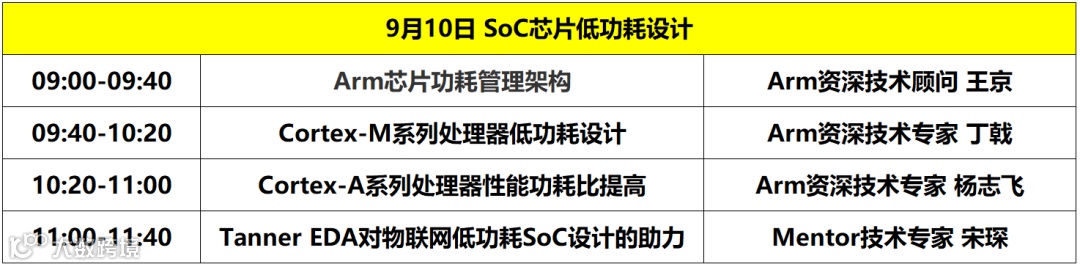 众所周知,SoC中一个核心指标就是功耗,不管是MCU芯片,还是手机芯片,芯片设计工程师都在想尽办法减少芯片的功耗。基于Arm处理器的SoC目前应用非常广泛,Arm也将出席第一届集成电路创新创业发展论坛的SoC芯片低功耗设计专题会场,分别为与会观众带来Arm芯片功耗管理架构、Cortex-M系列处理器低功耗设计、Cortex-A系列处理器性能功耗比提高主题分享。