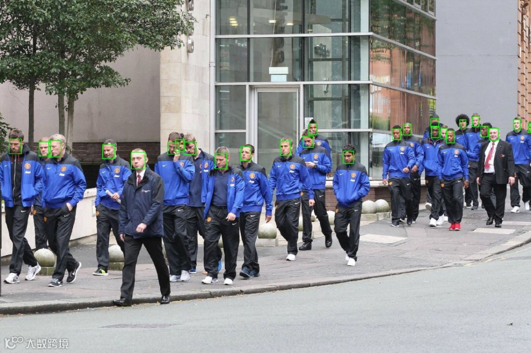 比赛不指定训练集,由参赛选手自行解决。测试集为6000张图片,每张图片分辨率为1280×720,包括至少30个不同角度人脸。测试集人脸包含不同性别,年龄,肤色。人脸标注图片如下所示: