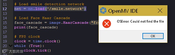在 OpenMV IDE 的笑脸检测 Python 示例中运行以下程序。