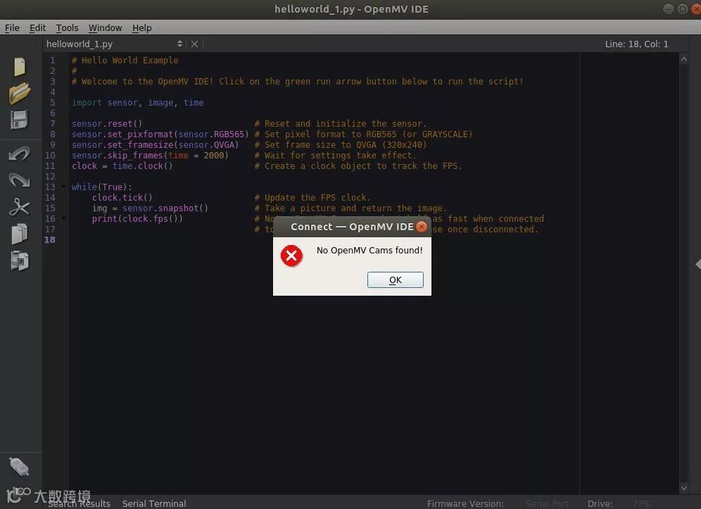 No OpenMV Cams found(未找到 OpenMV Cams)