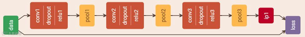为实现笑脸识别功能,我们将使用 OpenMV 定义的笑脸模型。如下图所示,该网络为三层卷积神经网络: