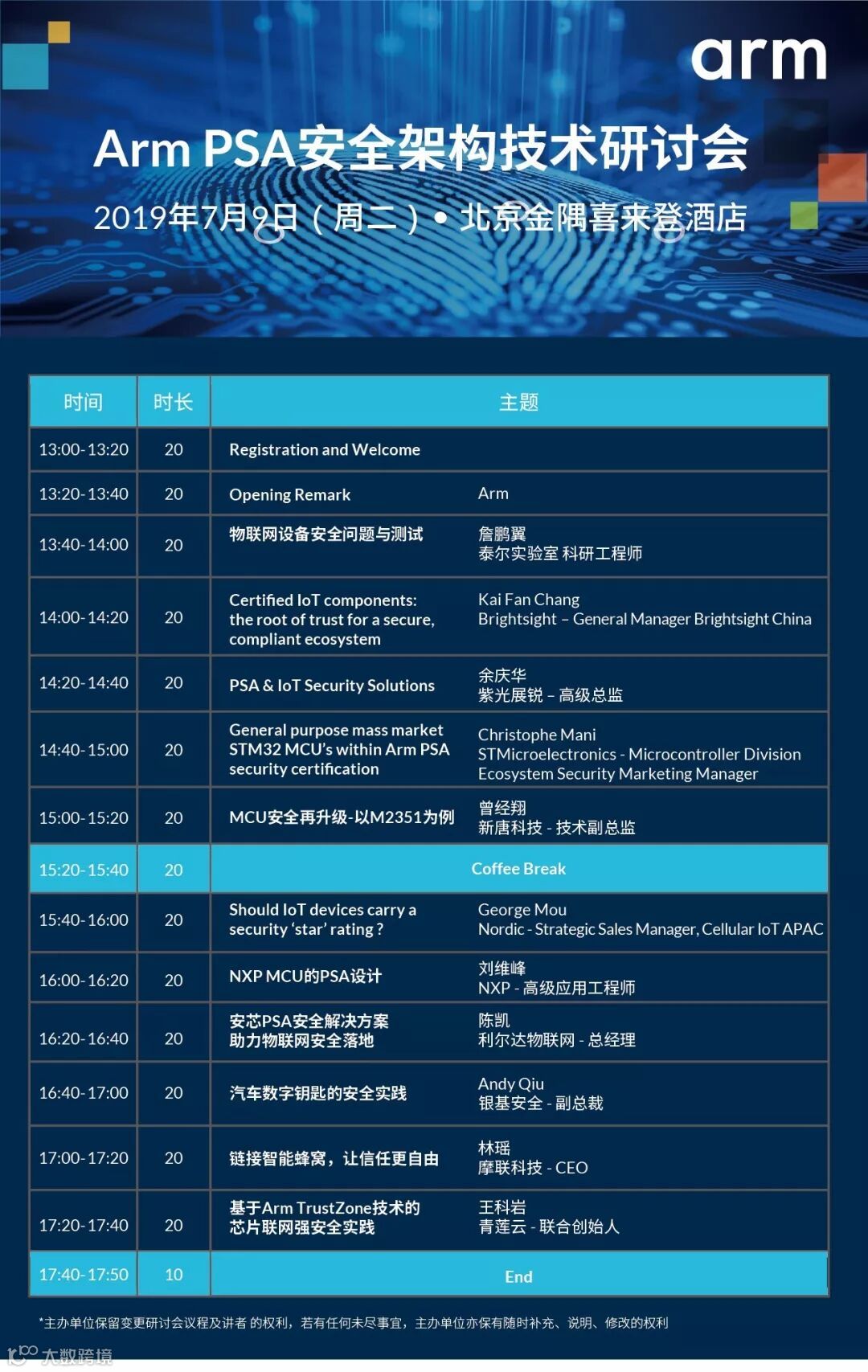 ◆ 活动名称:2019 Arm PSA安全架构技术研讨会