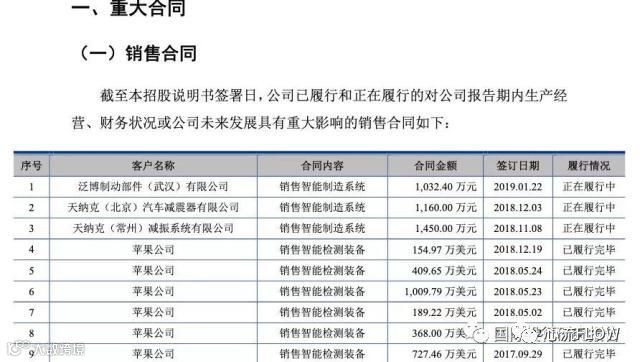 这是苏州天准IPO说明书的公开数据,美国苹果公司连续2年成为其最大客户。