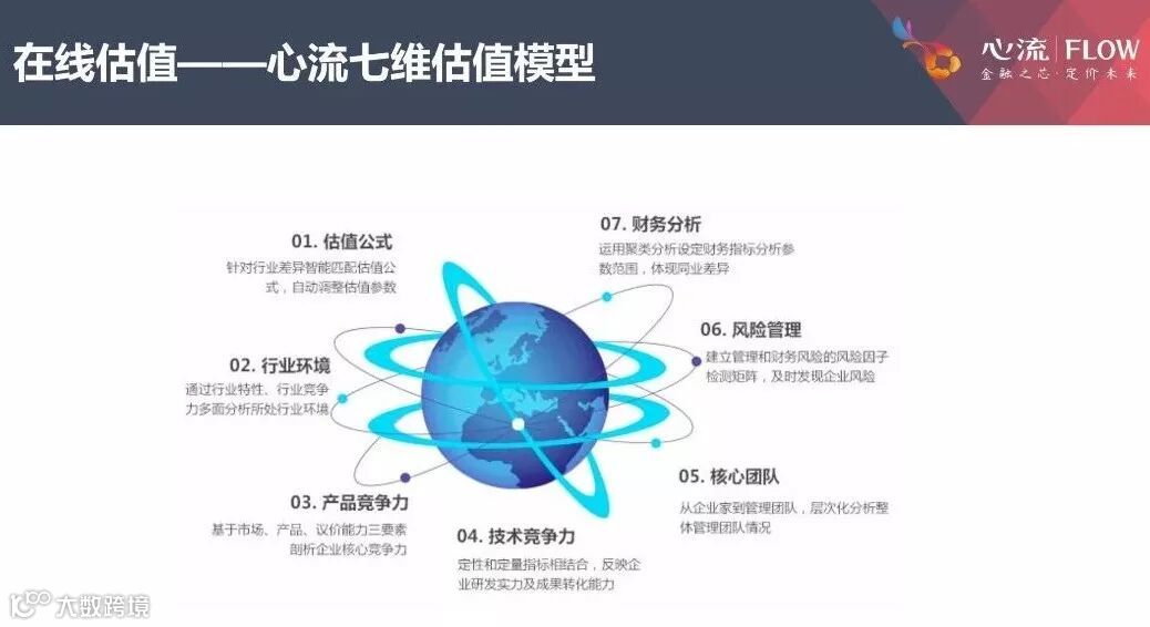 就像上图中心流七维估值模型中显示的那样,企业的产品竞争力、技术竞争力、行业环境、风险管理和财务情况,都是衡量一个企业价值的重要组成部分。