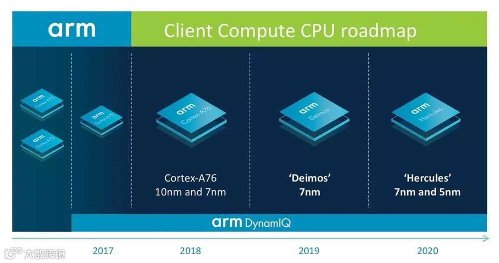 2019年,代号为Hercules的新一代CPU将交付Arm的合作伙伴。与Deimos相同,Hercules同样基于DynamIQ技术,并将针对5纳米和7纳米两个节点进行优化。保持除了计算性能的提升外,Hercules同时还将功耗效率和硅片面积效率提升了10%(不计来自5纳米进程节点本身实现的效率增益)。