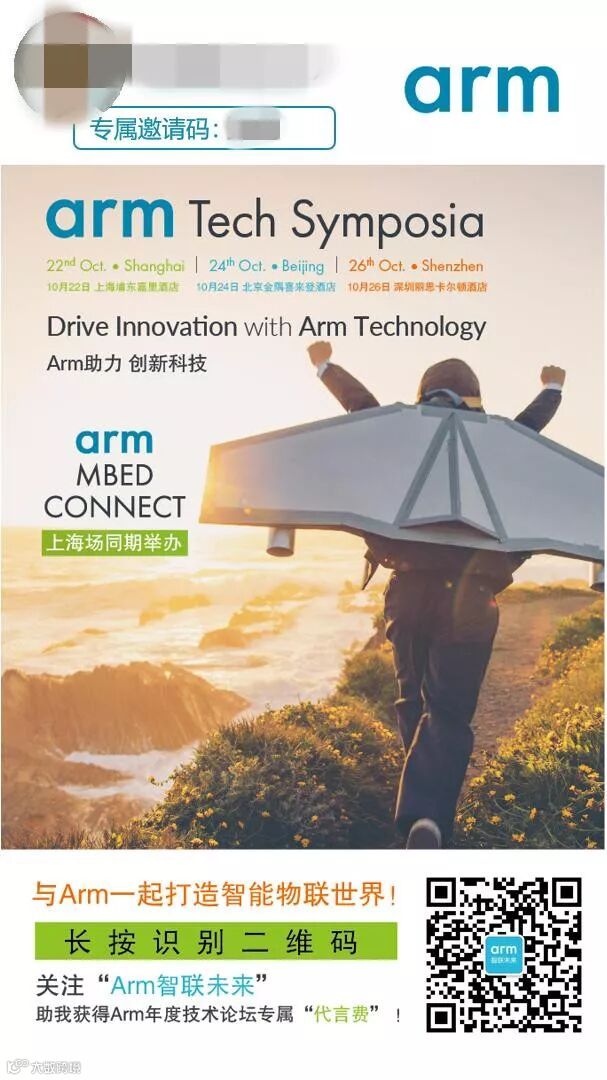 Arm年度技术论坛召开在即,您有一份“专属代言海报”已躺好。扫描二维码关注“Arm智联未来”微信公众号,然后领取您的“代言费”吧~