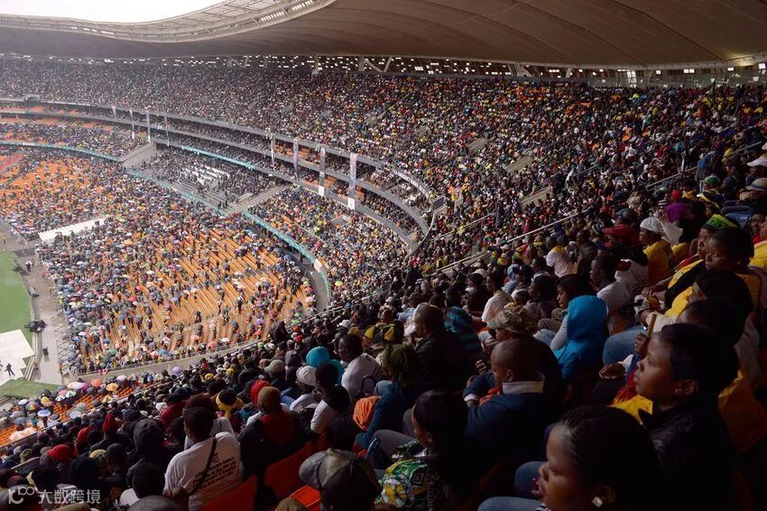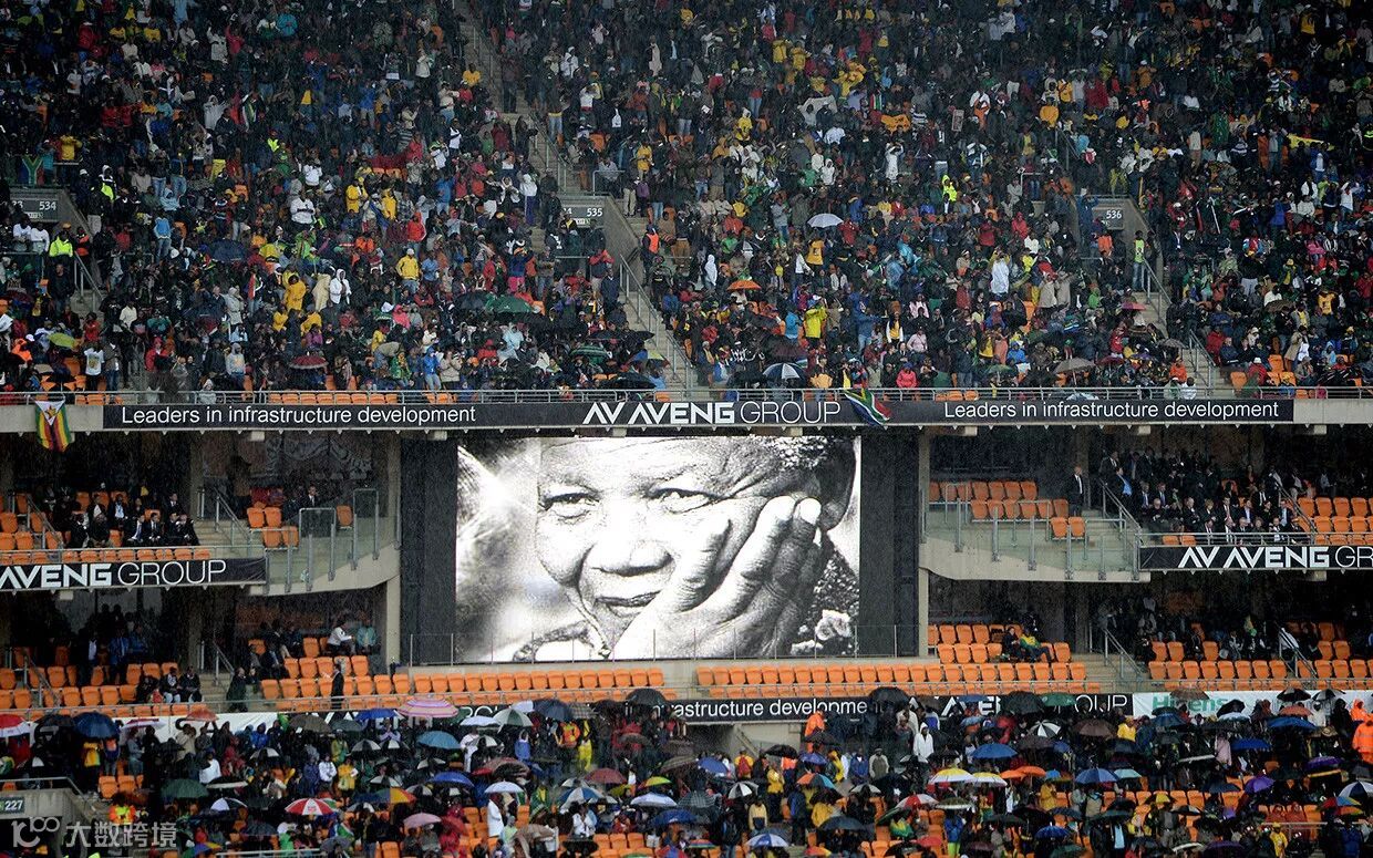 2013年12月10日,南非著名黑人城镇索韦托大雨下个不停。在曾是2010年足球世界杯比赛赛场的FNB体育馆,南非政府为曼德拉隆重举行了官方葬礼。能容纳9.5万人的体育馆几乎座无虚席,位列其中的世界各国国家元首和政府首脑竟达100多人。