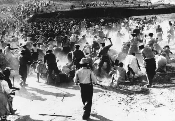 1960年1月24日南非Cator Manor地区警察殴打手无寸铁的抗议群众 图片来源: South Africa History Online