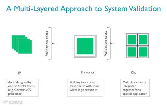 ARM IP 的性质意味着它要在各种不同的 SoC 中使用,从物联网设备到高端智能手机,再到企业级产品。系统验证的关键目标是确保技术能够一致地、可重现地运行设计的功能,在对 IP 进行严格验证时,我们始终牢记这个目标。换而言之,验证的重点目标是 IP,但必须在实际的系统环境中进行验证。为此,ARM 会在多种不同的实际系统配置下对 IP 进行测试,这些系统配置被称为套件。