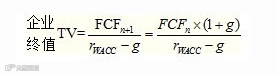 企业终值一般可采用永久增长模型(固定增长模型)计算。永久增长模型与DCF方法具有一致性,假定从计算终值的那一年起,自由现金流量是以固定的年复利率增长的。