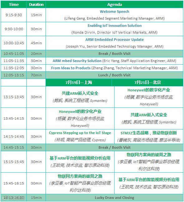 7月19和21日在上海(卓美亚喜马拉雅酒店)、北京(金隅喜来登酒店)举办的「2016智能嵌入式开发应用研讨会」,将重点介绍ARM v8-M架构以及基于ARM v8-M的TrustZone安全技术,还将涉及Fog computing、物联网网关等热点话题,同时也有ARM的合作伙伴针对智能嵌入式应用的行业案例和解决方案的分享。
