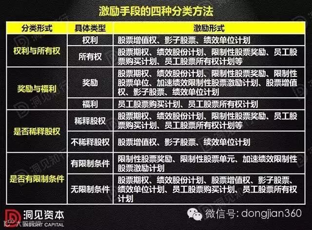 利益分成:主要有股票增值权、虚拟股票,或直接的工资奖金。利益分成主要是一事一结,短期激励。