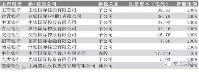 目前,我国大型商业银行多数已通过参控子公司模式建立了股权类投资机构,但由于《商业银行法》规定商业银行在境内不能进行股权类投资,因此,我国商业银行的股权类直接投资机构绝大多数都设在境外。上市银行中具有股权投资资质的子公司设立情况如下表: