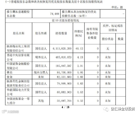 4,举两个深圳的投资大佬张尧的经典投资案例。因为张尧的资本金已经很高了,早就是百亿身家,一直打理自己的财富,没有发行公开产品,可查的资料很有限。据说张尧曾经投资伊泰B赚了大钱,因为时间久远,没有持股清单可以查询。我们今天重点谈一下张尧的另一只持股陕西煤业601225,因为我们可以在十大股东名册里看到张尧,持股数量和金额都很大。