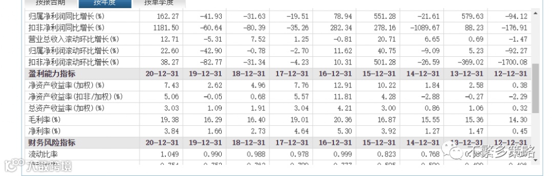 看看比亚迪的年报,从2012年到2020年,由右向左。总资产收益率,最高4.21%,最低0.32%。不如定期存款。然后看看净资产收益率,最高12.91%,勉强OK,最低0.38%。2008年到2012年,净资产收益率最高27%,这个很好,最低0.38%。总资产收益率,最高10.3%,最低0.12%。(2009年以前的数据没有整理。)