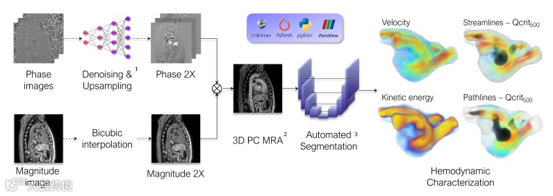 2.1 首个面向LA的完全开源计算框架:整个流程完全基于Python及开源软件(如nnU-Net, ParaView, Slicer3D),确保了方法的透明度、可重复性和可扩展性,有力推动了4D Flow MRI在LA分析领域的标准化进程。