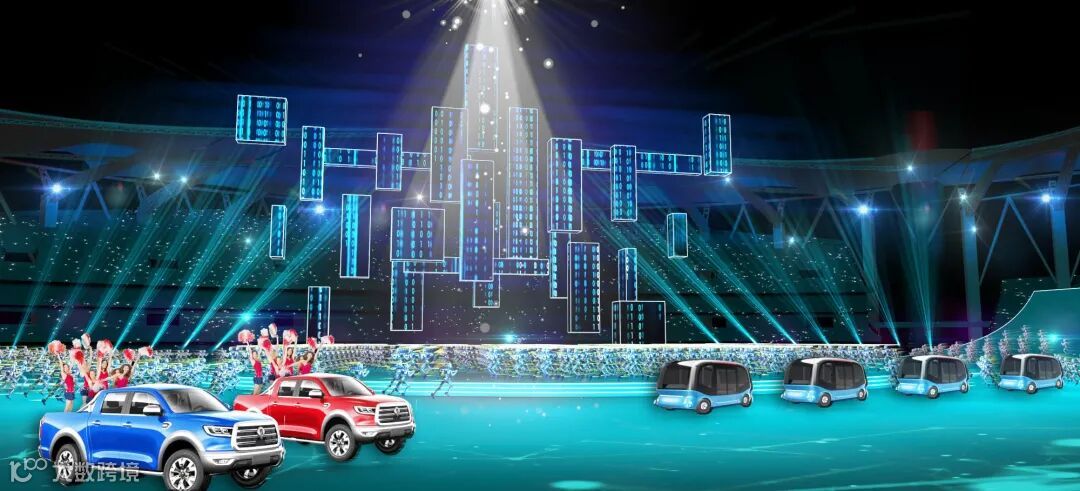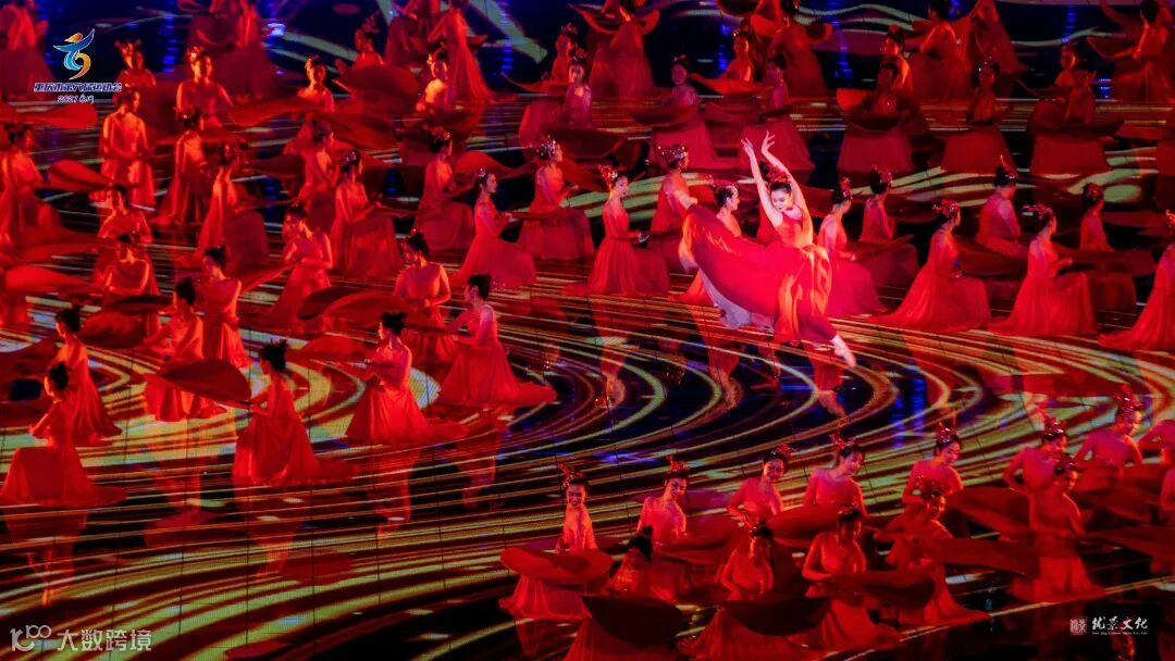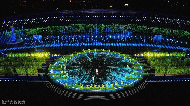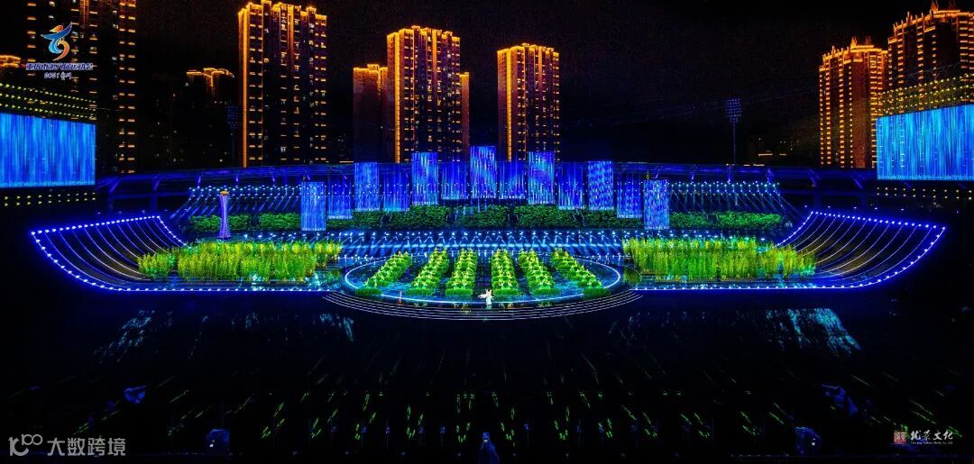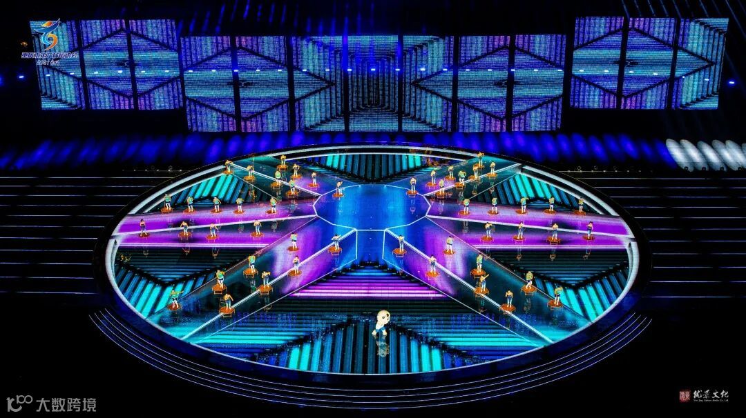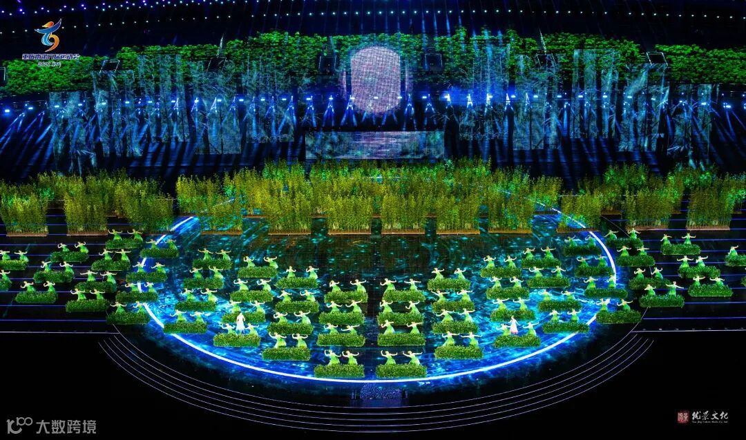视觉内容与多变的舞美舞台结构完美结合呈现视觉奇观,时而出现竹林茶海,时而出现魔幻都市。并采用VR虚拟现实技术,动作捕捉等高科技技术,实现千变万化的影像内容,充分体现出重庆特有的视觉表达。