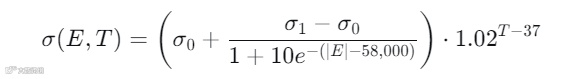 考虑温度对电导率的影响,每升高1°C,电导率增加2%。包括两种不同电导率的金属材料。