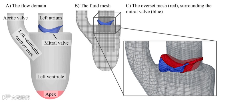 流体模型:血液采用Carreau非牛顿模型,流体域为简化左心结构,使用重叠网格技术处理瓣叶大变形。