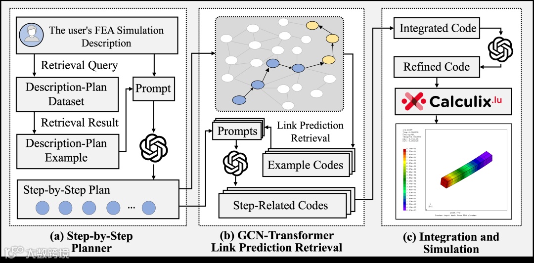 有限元分析(FEA)作为工程仿真中广泛使用的数值方法,能够精确模拟结构力学、热传导、流体动力学等物理现象。传统FEA软件(如CalculiX、Abaqus)操作复杂,需用户具备专业知识,限制了其普及与应用效率。若能通过LLMs自动生成FEA输入文件,将大幅降低使用门槛,提升仿真效率。然而,直接使用LLMs生成FEA代码仍面临收敛性、多物理场耦合等技术挑战,亟需系统性的方法支持。