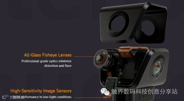 4个鱼眼镜头捕捉360°全景视频,内置高效影像处理芯片,专业软件实时拼接合成影像。
