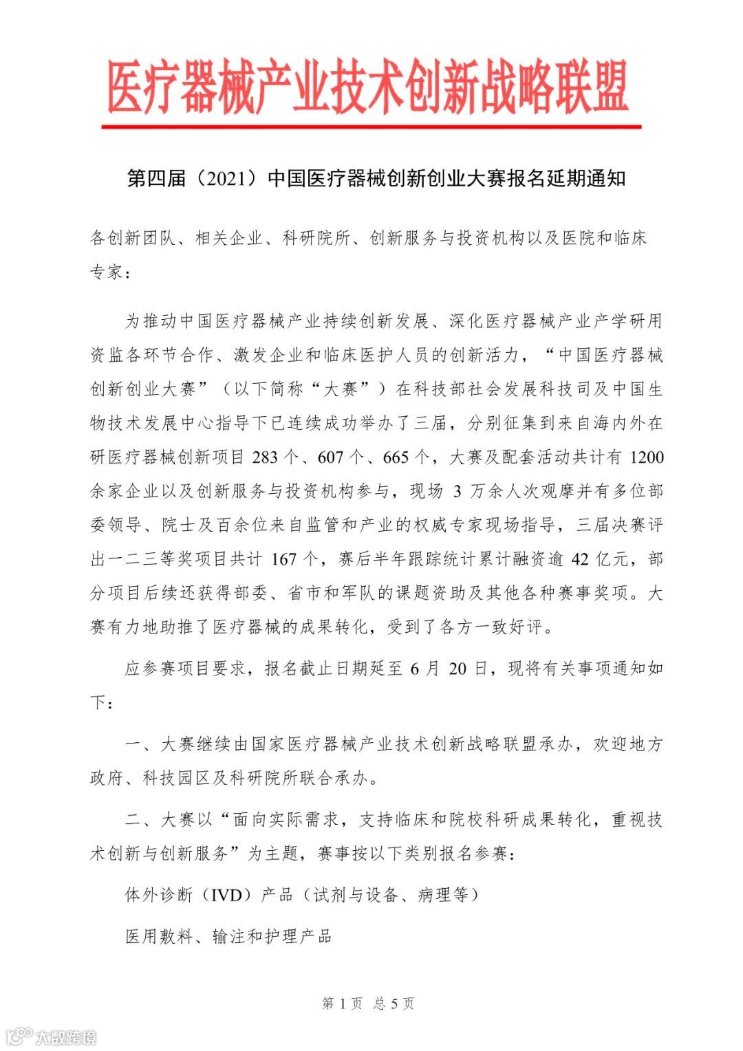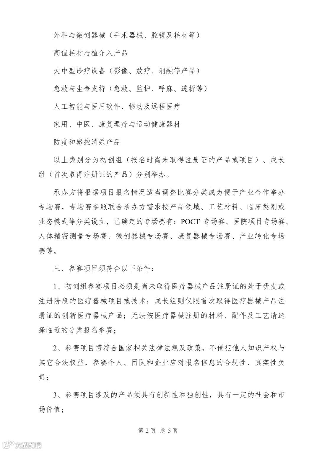 以上类别分为初创组(报名时尚未取得注册证的产品或项目)、成长组(首次取得注册证的产品)分别举办。