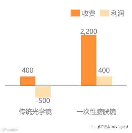 图:传统光学膀胱镜与一次性膀胱镜收费与利润对比举例(元)
